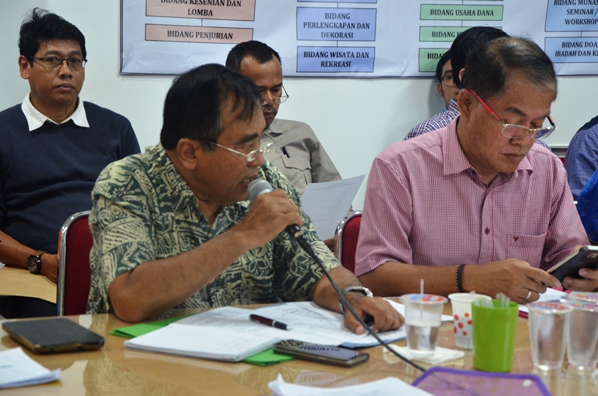 Pontianak, Kalimantan Barat – Rabu, 30 Agustus 2017 Panitia Pelaksana mengadakan rapat Pleno yang dipimpin oleh Ketua Harian Ir. Jakius Sinyor dan dihadiri Para Ketua, Sekretaris, Bendahara dan Ketua-Ketua Bidang dan Wakilnya. Rapat yang beragendakan evaluasi, rencana kerja & rencana anggaran biaya bidang-bidang ini dimulai pkl. 19. 00 wib dengan makan malam bersama terlebih dahulu dan berakhir pkl. 23.30 wib. Rapat berjalan lancar meskipun ada beberapa bidang yang belum dapat melaporkan rencana kerja & anggaran biaya bidangnya karena belum pernah mengadakan pertemuan bidang.